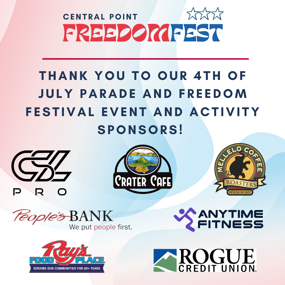 The Central Point 4th of July Parade and Freedom Festival is a cornerstone event in Central Point, Oregon, and we take great pride in hosting this annual community tradition. Our mission is to bring residents and visitors together in a meaningful celebration of freedom, unity, and civic pride.